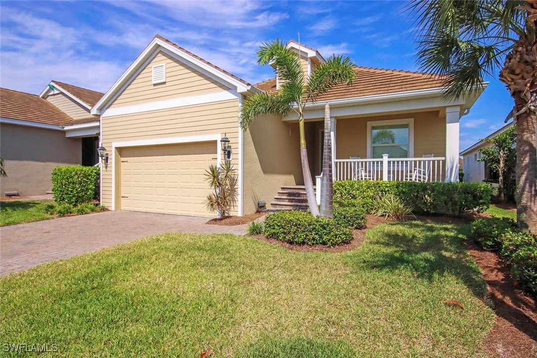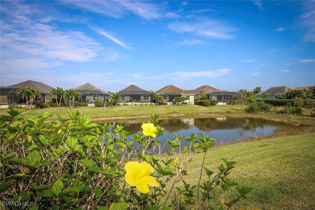 MOVE-IN READY! This immaculate 3-bedroom, 2.5-bath home plus office/den/flex room is ideally located on a premier lakefront lot in the highly sought-after Coastal Key community. Nestled at the end of Winkler Road Extension, this home offers unmatched convenience for full-time residents with quick access to beaches, shopping, restaurants, top-rated schools, RSW airport, and medical facilities. It's also a fantastic option for part-time residents, thanks to gated security and included exterior lawn care, all for a low HOA fee. Enjoy peace of mind with HURRICANE IMPACT GLASS windows throughout, adorned with elegant white plantation shutters. Built by Neal Homes, this quality-crafted residence has an elevated living level (approx. 4 ft above ground) and a bright, open floor plan filled with natural light. The modern kitchen is a chef’s dream with a large island, stylish tile backsplash, and a spacious walk-through pantry. The primary suite includes walk-in closets, dual vanities, and a luxurious oversized shower. Step outside to your large, screened lanai with a natural gas-heated pool, perfect for relaxing or entertaining while taking in the tranquil lakefront views. This home truly embodies the Florida lifestyle